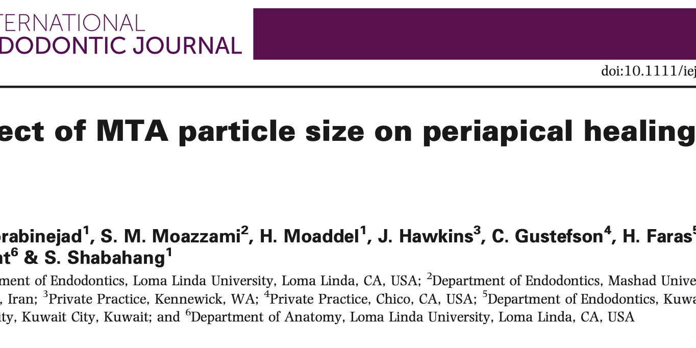 この論文は、従来のMTAセメントと、粒子を小さくしたMTAセメントを比較しています。治療内容は外科的な神経の治療(歯根端切除術)です。小さくしても従来のMTAセメントと同等の効果が得られるかどうか、ベーグル犬の歯を使って実験しました。
