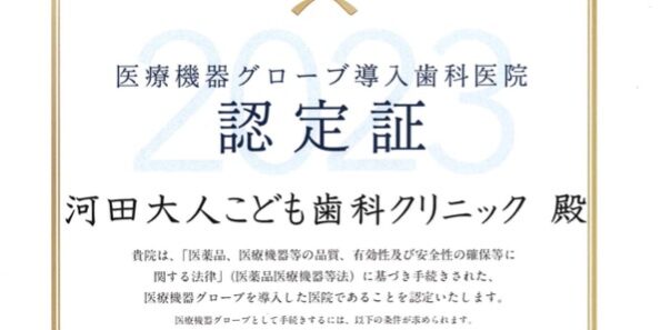 先日、「医療機器グローブ導入歯科医院」に認定されました。