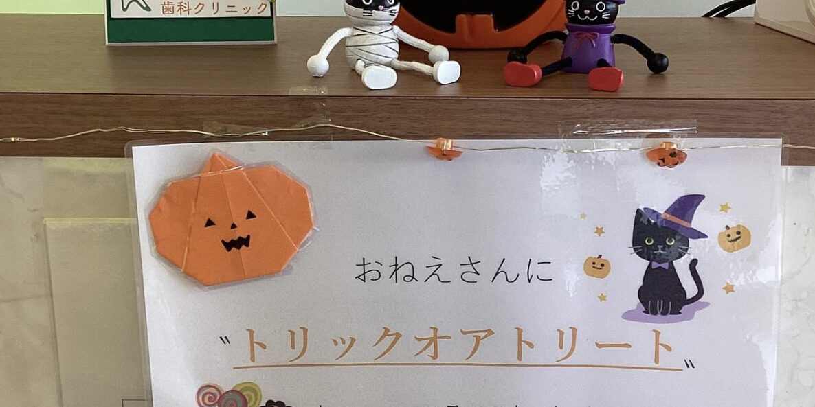 当医院では10月31日のハロウィンにさきがけて10月15日より来院いただいた患者様に甘味料にキシリトールが100%使用されている〝歯医者さんが作ったチョコレート〟をお渡ししています😊(無くなり次第終了。2週間ほどで終了予定)