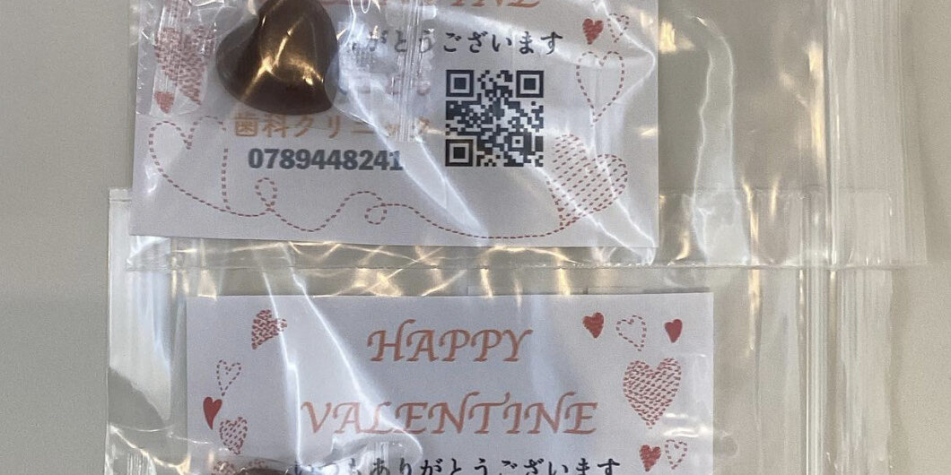 当医院では2月10日より来院いただいた患者様にバレンタインデーとして甘味料にキシリトールが100%使用されている〝歯医者さんが作ったチョコレート〟をお渡ししようと考えています😊(無くなり次第終了。1週間ほどで終了予定)