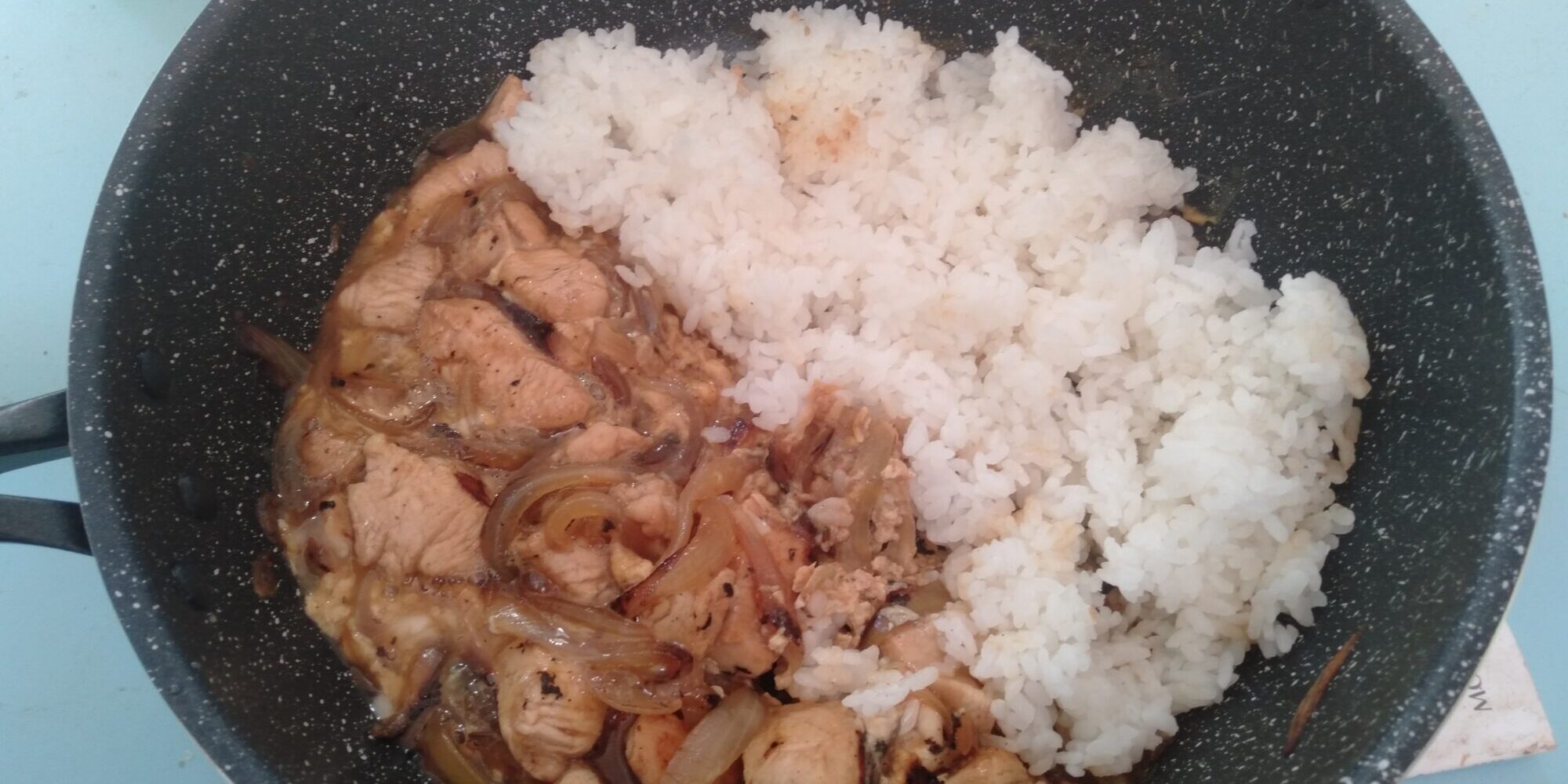 冷蔵庫に玉ねぎと卵が残っていたので親子丼を作りました。エコノミーでエコロジーのためにお皿に移さずにフライパンのまま盛り付けるスタイルです。