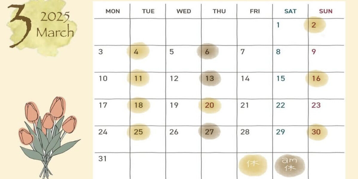 3月22025山陽西二見駅から徒歩5分の歯医者、河田大人こども歯科クリニック、です。3月の休診日になります☺️3月20日(木)は祝日になりますので1日休診日です🙇ご迷惑をおかけしますがよろしくお願いします。 トップページ 院長紹介 自己紹介① ブログ一覧 診療日変更のお知らせ カテゴリー: クリニック, ニュース河田から2025年3月2日コメントする 投稿者: 河田投稿ナビゲーション前へ前の投稿:バレンタインデー次へ次の投稿:ひな祭りRelated posts誕生日ケーキ(11月)2025年11月24日スタッフさん募集2025年11月6日誕生日ケーキ(10月)2025年11月4日10月のの休診日2025年11月1日短縮診療2025年11月1日サンキューカード(10月カップラーメン)2025年10月23日