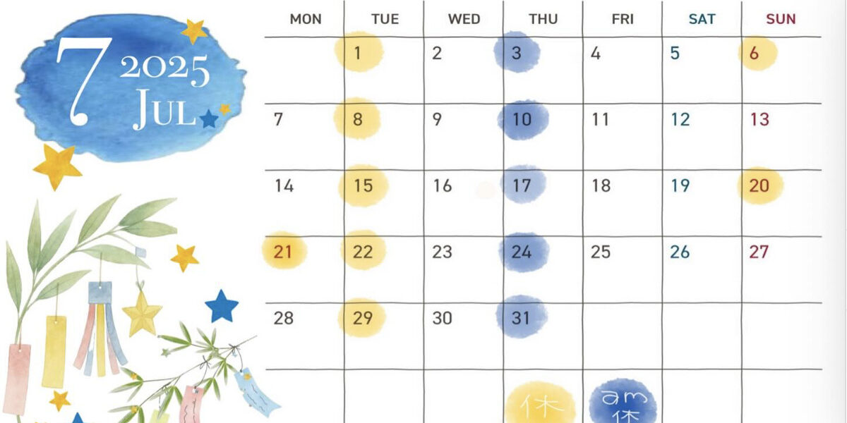 7月の休診日になります🎋7月21日(木)は祝日のため休診となります🙇ご迷惑をおかけしますがよろしくお願いします。