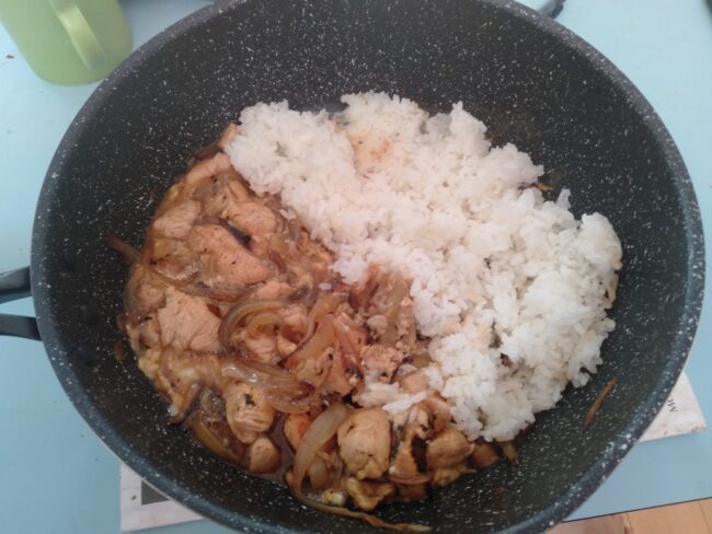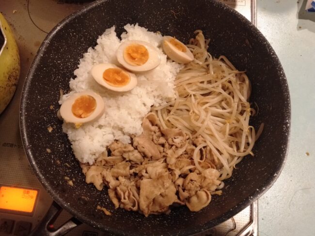 100gで70円の鶏むねと、100gで150円の国産豚バラを買いました。今回は鶏むねで親子丼を作りました。