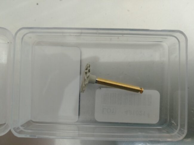 仲のいい先生に勧められて新しいインスルメントを購入しました。白い樹脂で充填した後の研磨に使う器具です。