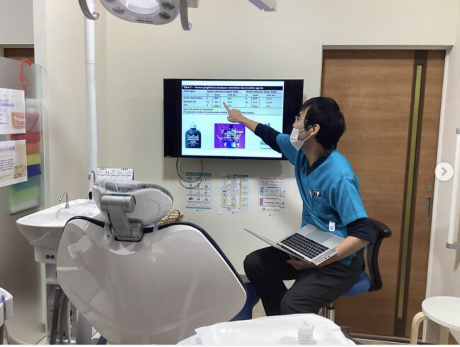 先日、診療終わりに河田先生が洗口液についての勉強会を開いてくださいました!