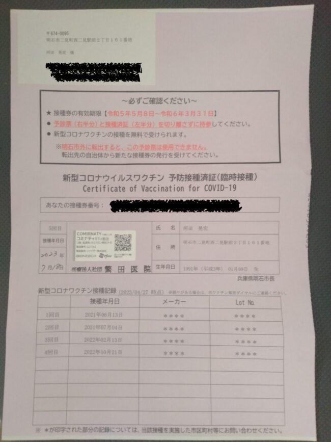 今日は新型コロナワクチンの5回目を接種してきました。私は、ワクチンの接種時期がきたらなるべく早く、接種するようにしています。