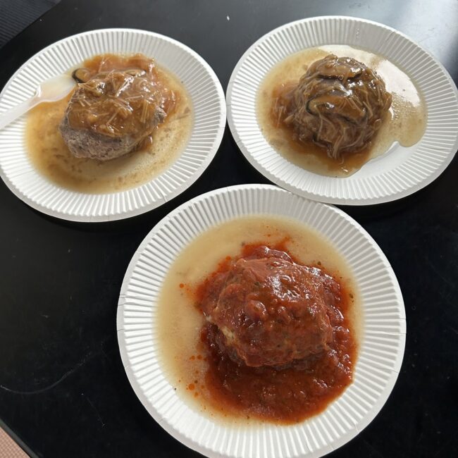 取引している材料屋さんから、お中元としてハンバーグをいただいたので、スタッフで美味しくいただきました。
