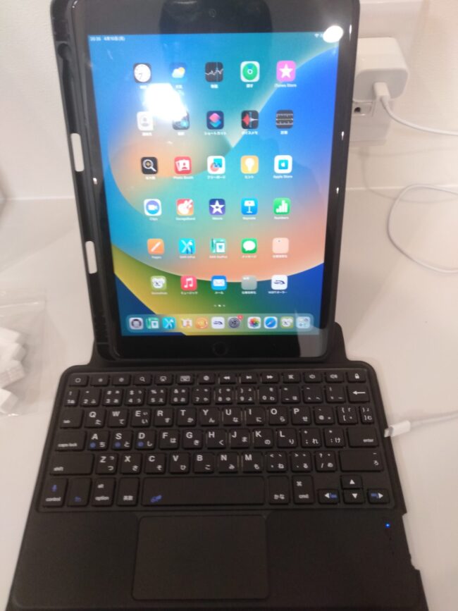 そこでキーボードを購入しました。これを使うとパソコンと遜色なく打ち込みができるので非常に便利です。