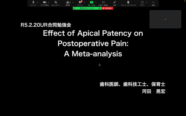 歯の神経の治療で、ブキャナン先生はapical patencyというテクニックを推奨しているのですが、その効果と術後疼痛についての論文でした。
