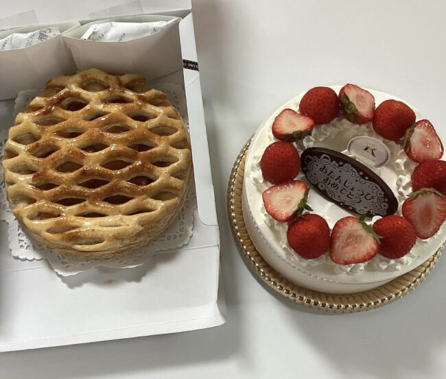 先日、お誕生日のスタッフさんがいたので河田先生がケーキを買ってきて下さり、スタッフみんなで美味しくいただきましたました🍓🍎