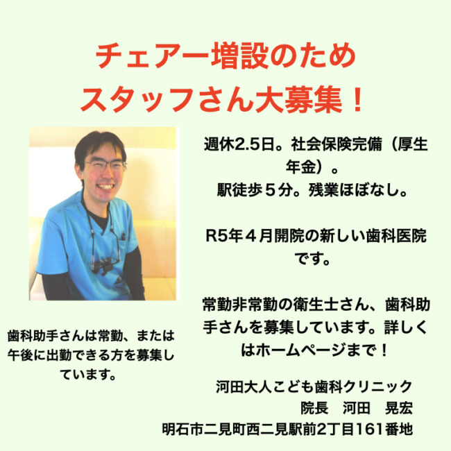 山陽西二見駅から徒歩5分の歯医者、河田大人こども歯科クリニックです。