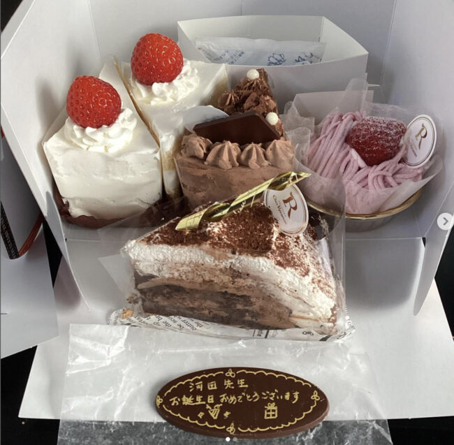 今日は河田先生のお誕生日でしたのでスタッフみんなから先生へケーキをプレゼントしました🎂