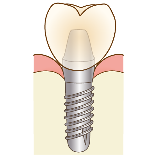 「インプラント」と呼ばれる人工歯根を歯を失ってしまった部分に埋め込み、その上に人工歯を装着することで、まるで自分の歯のような見た目や噛み心地を回復させることができます。